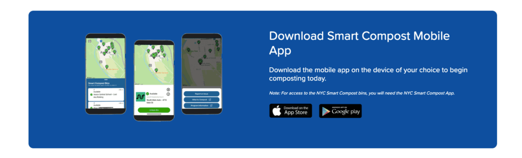 Locate Smart Compost bins nearby. See which ones are available for use. Unlock the bin with a simple tap of the “Unlock Bin” button to deposit food waste in the hands-free chute.
